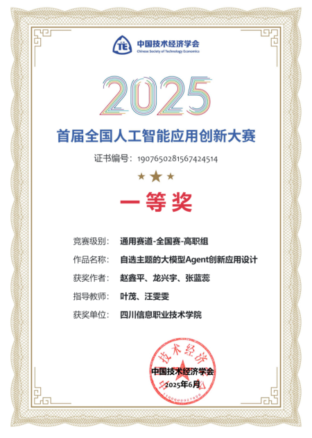 2025首届全国人工智能应用创新大赛是一项以经济学、管理学及其他领域课题作为应用场景,考察参赛选手设计AI智能体(AI Agent)、应用人工智能大模型技术解决相应问题的竞赛。比赛于4月至6月举行,全国近20000个学生及企业团队参加了比赛,高职组共有25个团队进入全国总决赛。