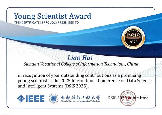 软件学院教师廖海荣获IEEE DSIS青年科学家奖