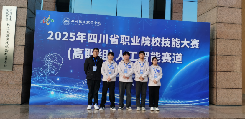 1月12日至15日,2025年四川省职业院校技能大赛人工智能赛道在四川铁道职业学院举行。软件技术专业孙海宇、王文俊、唐诗语、陈亮四位同学组成的参赛团队,在教师张俊晖、张光辉的指导下,凭借扎实的专业功底从全省46支参赛队伍中脱颖而出,斩获金奖。我院软件技术专业在2025年四川省职业院校技能大赛中取得“两赛双金”佳绩。