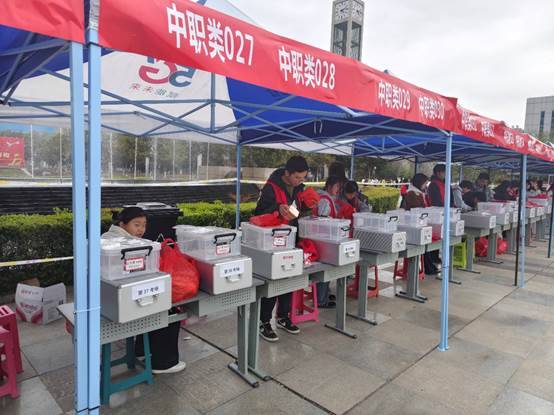 图3:志愿者整理考务物资,保障单招