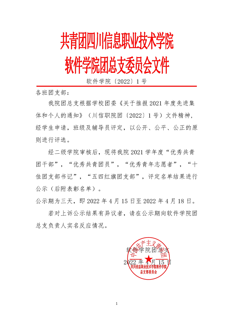 软件学院2022年五四评优公示文件