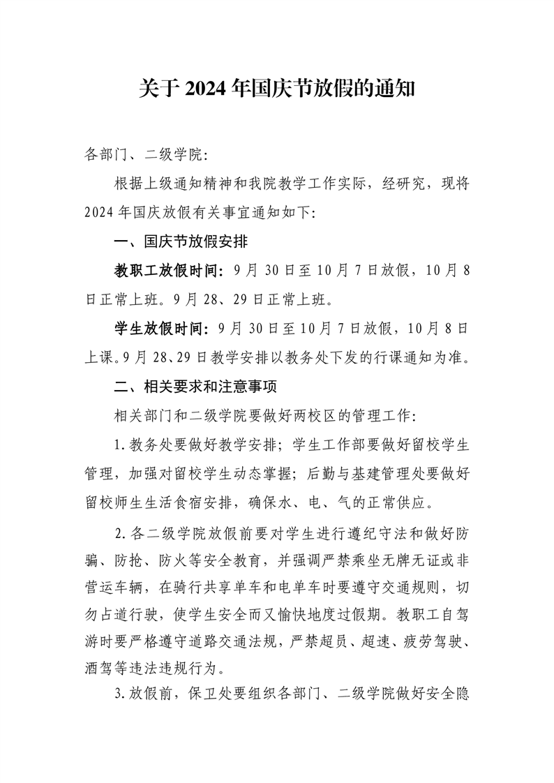 关于2024年国庆节放假的通知