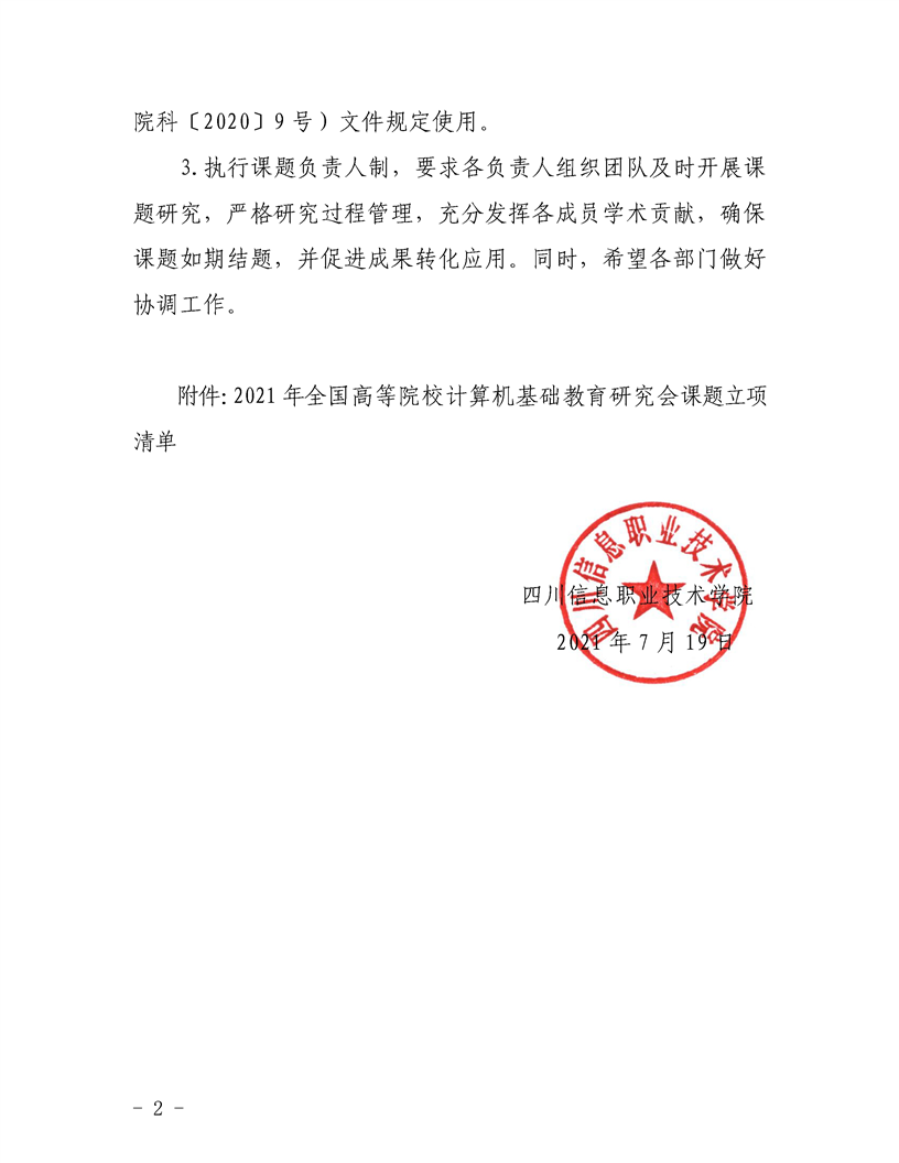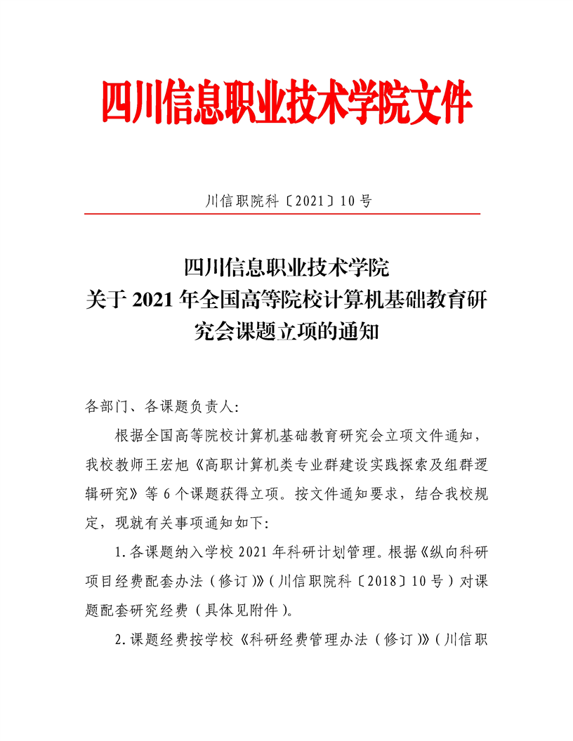 四川信息职业技术学院关于2021年全国高等院校计算机基础教育研究会课题立项的通知
