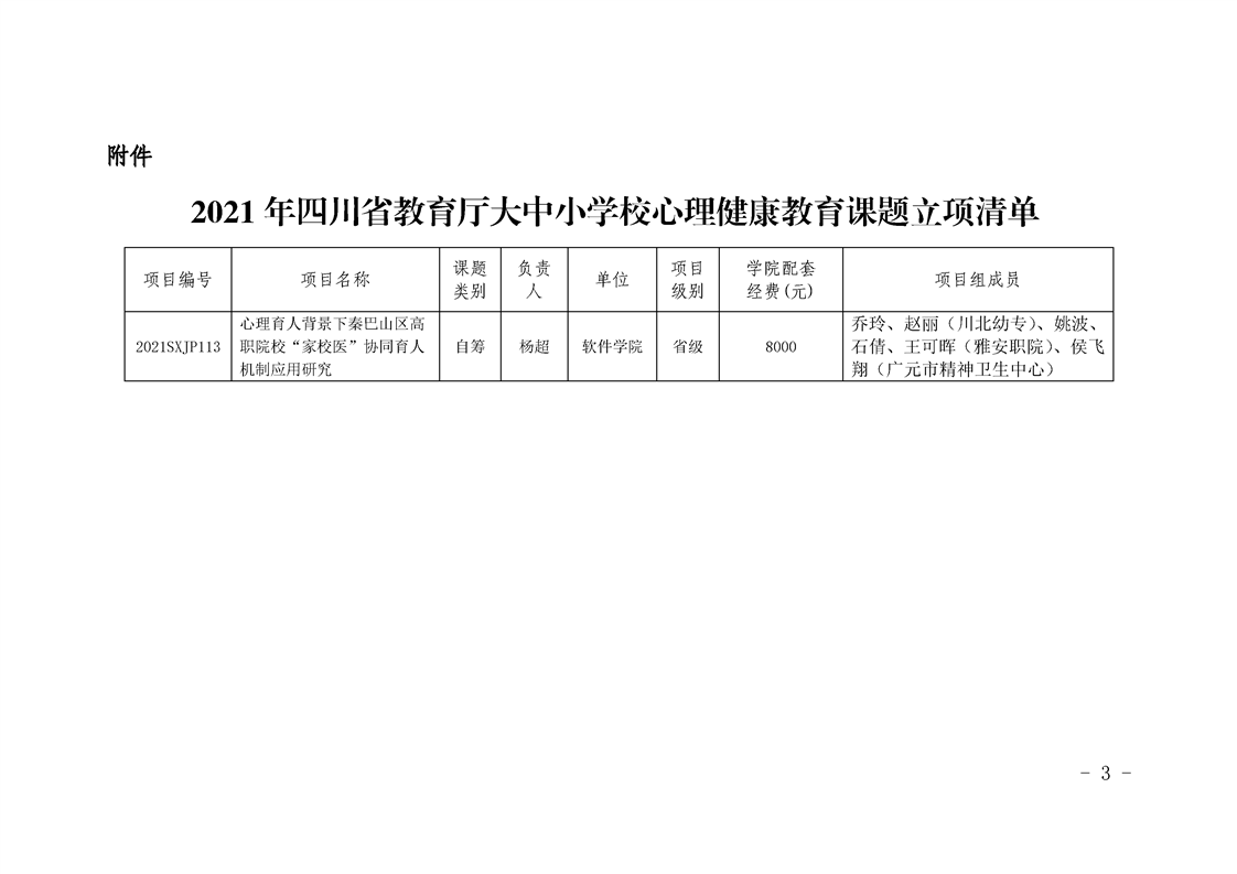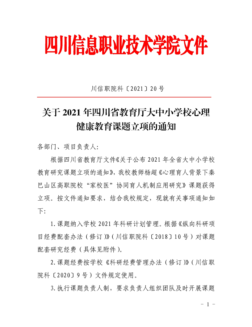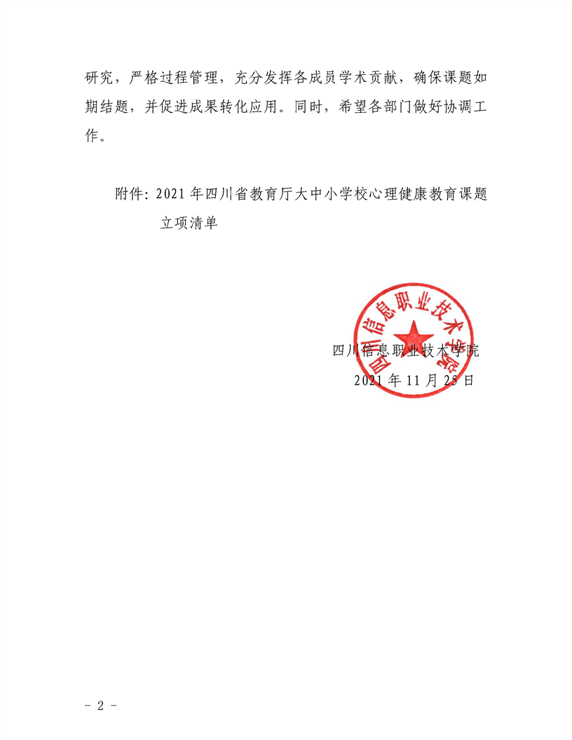 四川信息职业技术学院关于2021年四川省教育厅大中小学校心理健康教育课题立项的通知