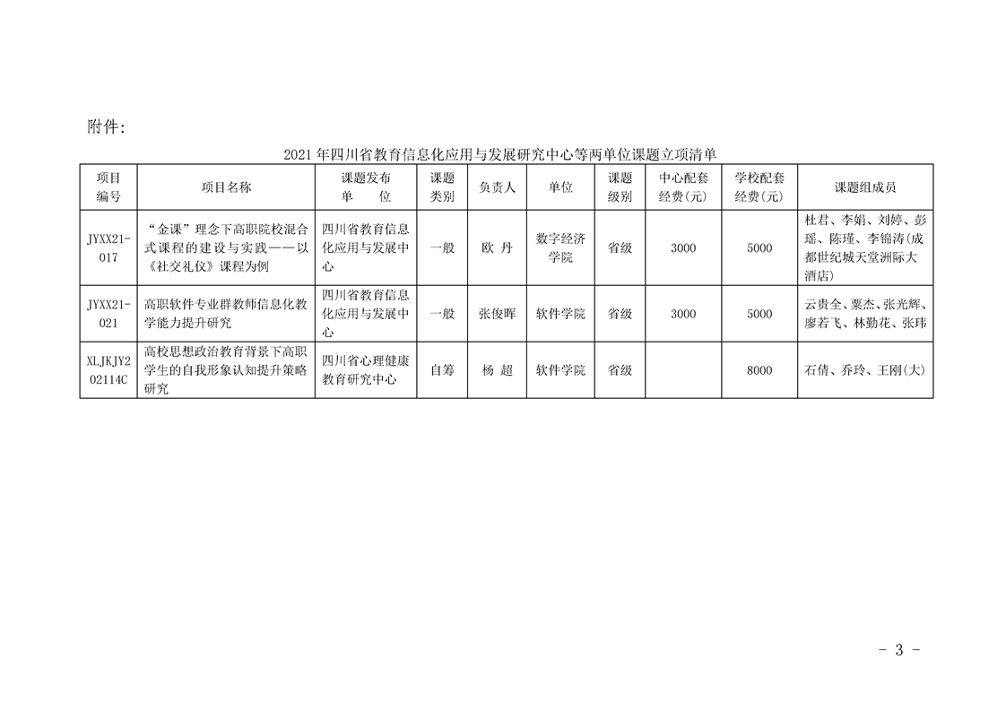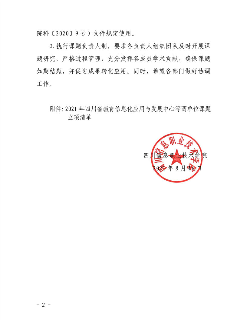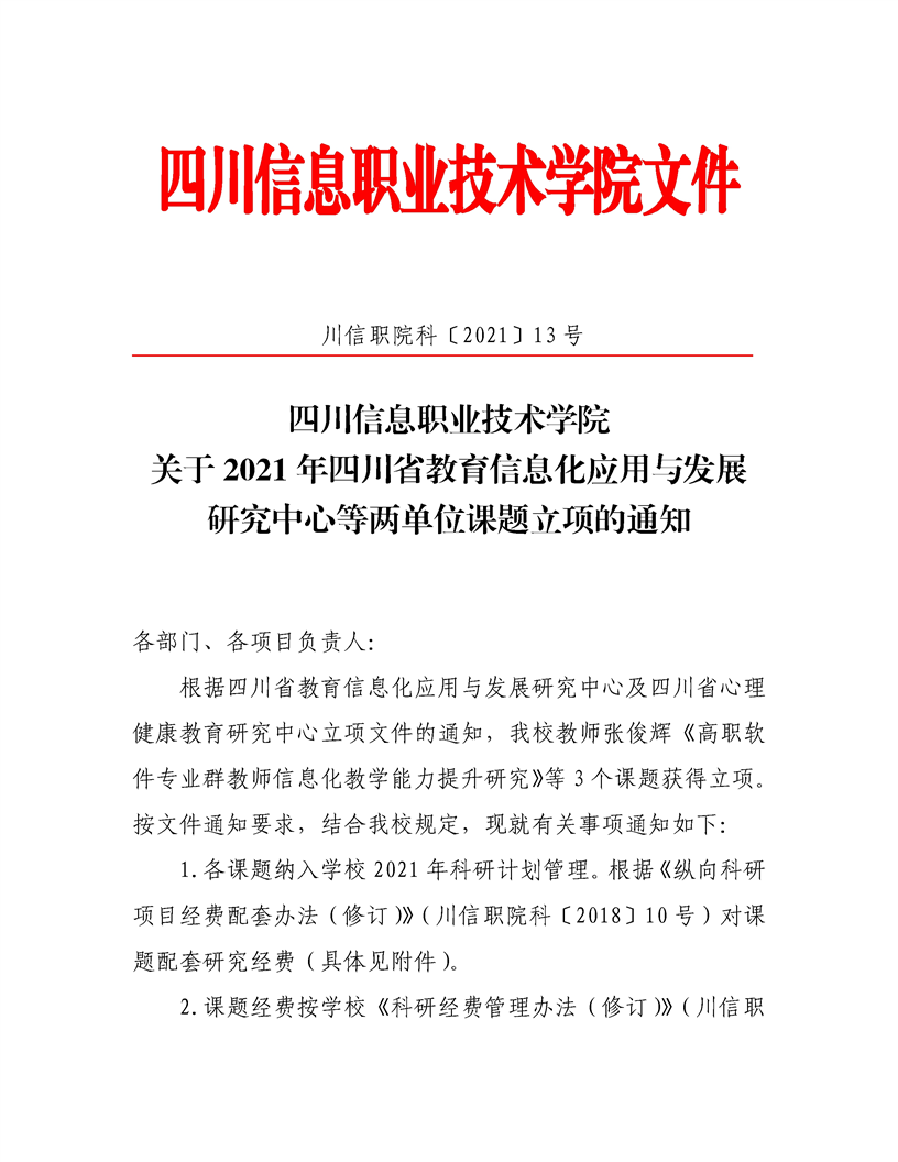 四川信息职业技术学院关于2021年四川省教育信息化应用与发展研究中心等两单位课题立项的通知