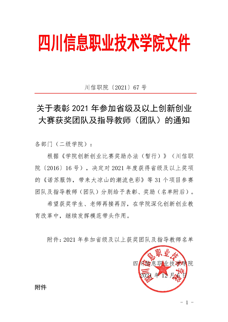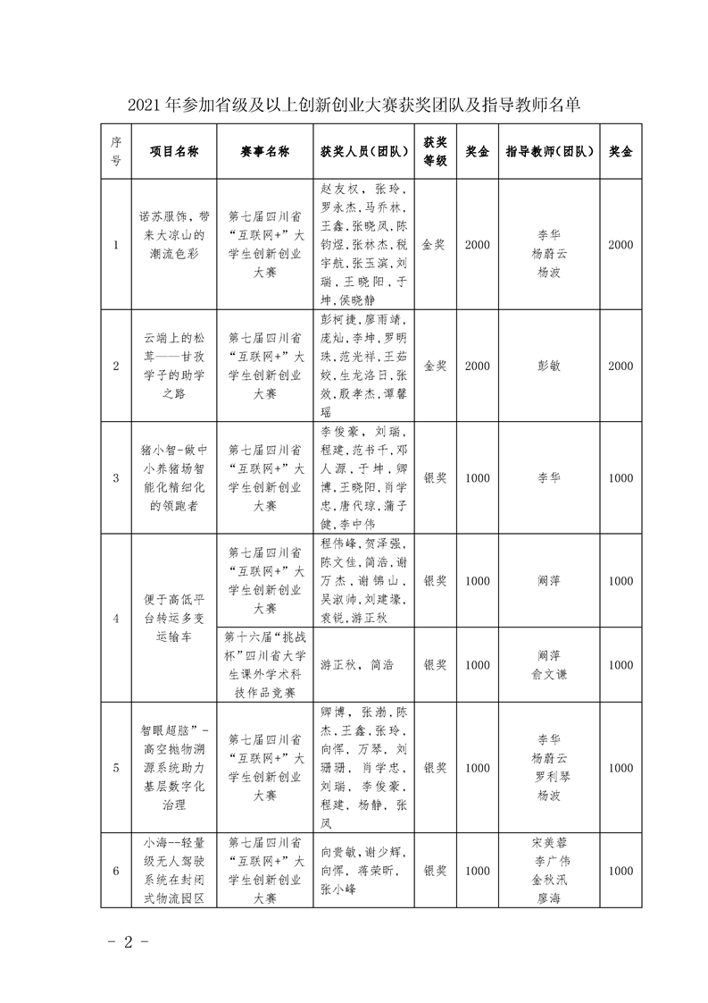 关于表彰2021年参加省级及以上创新创业大赛获奖团队及指导教师(团队)的通知